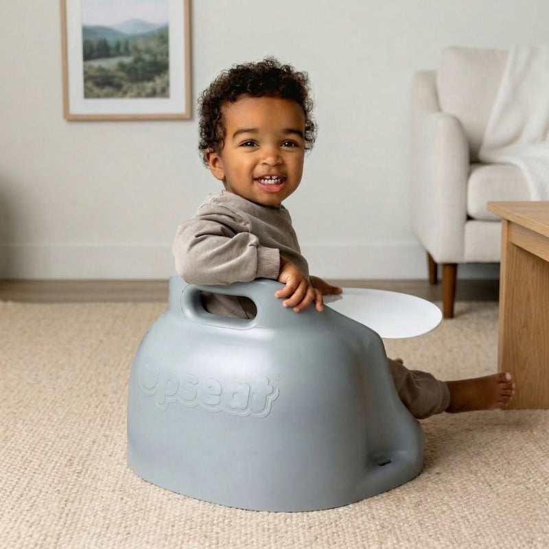 The Upseat is a 3-in-1 ergonomic floor and booster seat that encourages upright posture and healthy hip development.